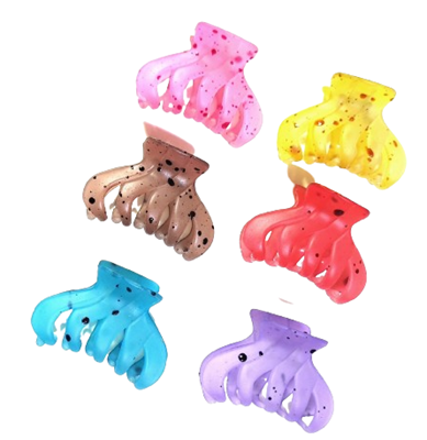 This set includes six stylish and functional claw clips, perfect for adding a pop of color to any hairstyle.